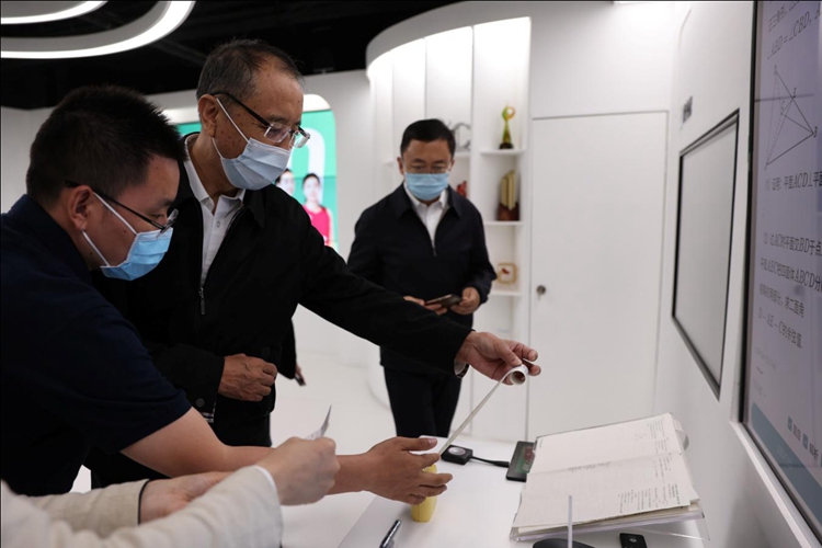 圖為作業(yè)幫CEO侯建彬向中央統(tǒng)戰(zhàn)部斯塔同志介紹相關(guān)產(chǎn)品