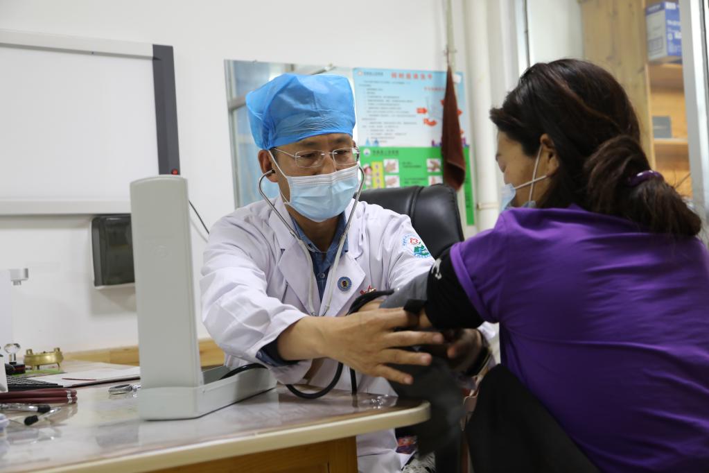在瑪曲縣人民醫(yī)院,王團(tuán)勝為患者看病。新華社記者 馬莎 攝