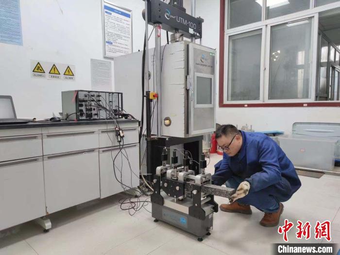 黃恒偉與團(tuán)隊(duì)為莫喀高鐵項(xiàng)目進(jìn)行四點(diǎn)彎曲疲勞試驗(yàn)?!∈茉L者供圖