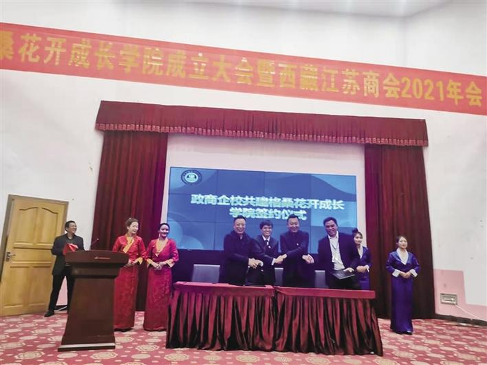 8月27日,南京市對口支援墨竹工卡縣工作組在西藏職業(yè)技術(shù)學(xué)院舉辦以“政商企校共建 聚力就業(yè)援藏”為主題的格?;ㄩ_成長學(xué)院成立大會暨西藏江蘇商會2021年年會。