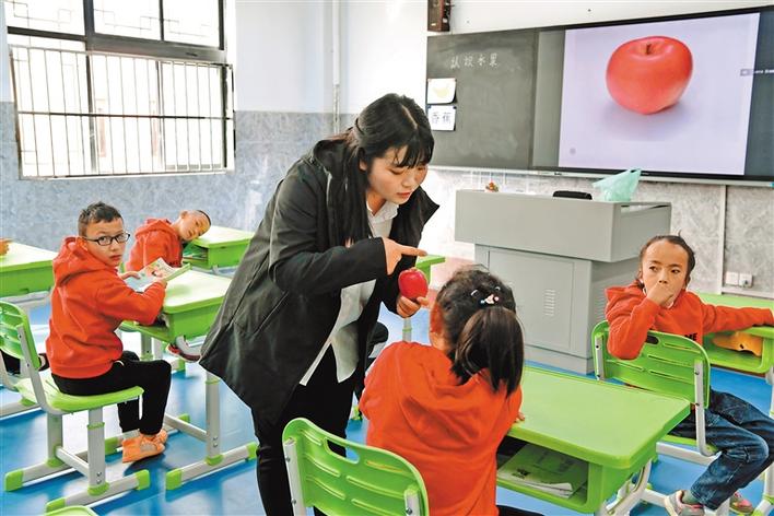 拉薩市特殊學(xué)校的老師通過圖片、實物讓孩子們認(rèn)知水果。 記者 唐斌 丹增群培 攝