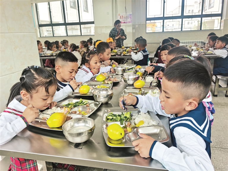 “學(xué)校沒有提供午餐前,中午特別忙。我是在路上趕,母親在家里忙,把小孩接回家吃飯,吃完后馬上又要趕回學(xué)?!,F(xiàn)在學(xué)校提供午餐,實在是太方便了?!崩_市第一小學(xué)四年級學(xué)生家長央金說道。