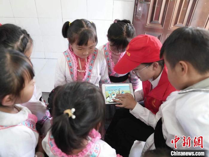 圖為孩子們觀看特別制作的施工現(xiàn)場(chǎng)模擬視頻。 李繼嬌 攝