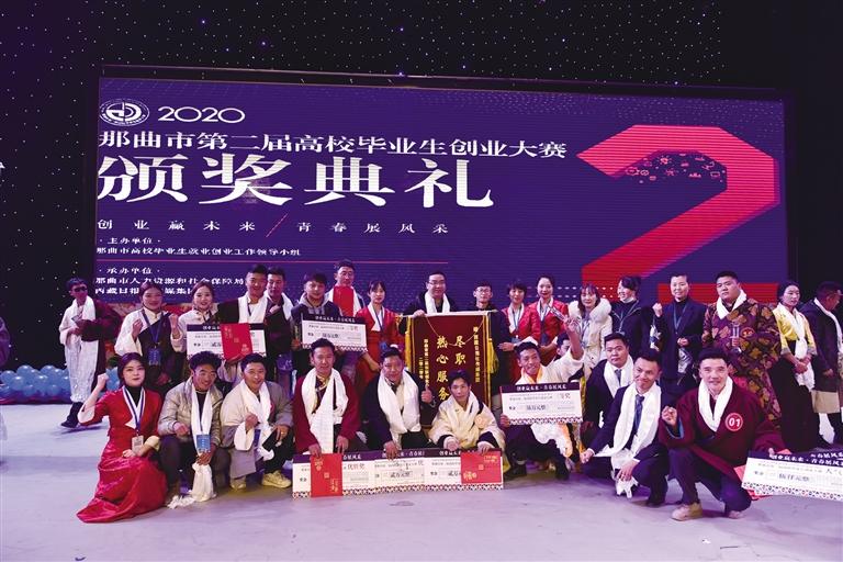 那曲市第二屆高校畢業(yè)生創(chuàng)業(yè)大賽頒獎(jiǎng)現(xiàn)場。