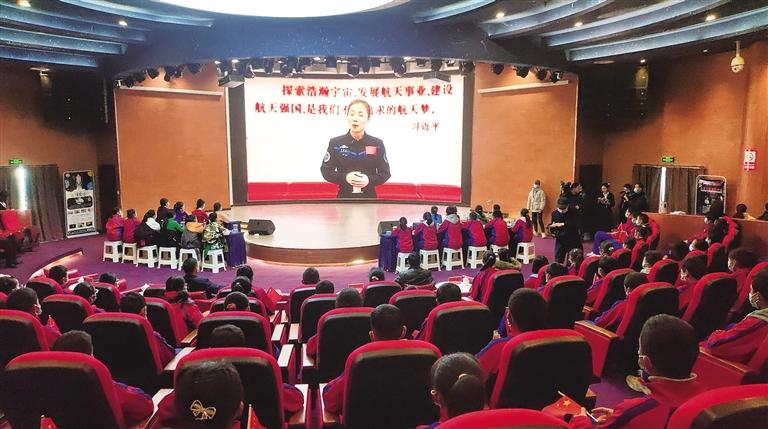 12月9日下午,“天宮課堂”的上課鈴聲在藏域星球天文體驗館準(zhǔn)時響起,這是中國空間站首次太空直播授課,授課者為神舟十三號乘組航天員翟志剛、王亞平、葉光富。