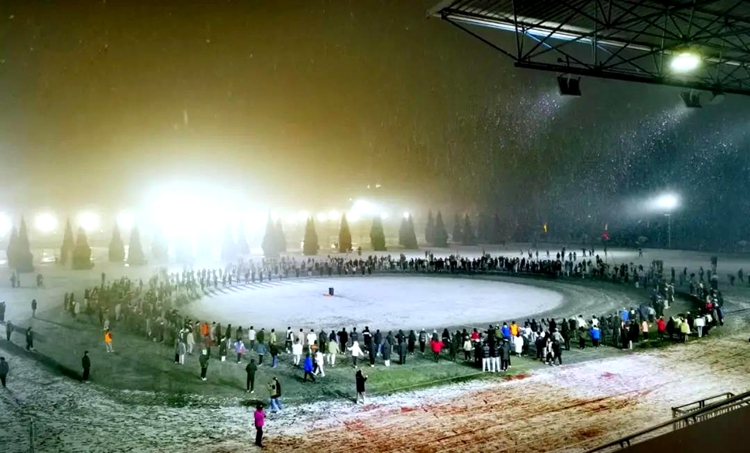 中國(guó)西藏網(wǎng)訊 紅燈高掛,年味已濃的古城咸陽(yáng),瑞雪紛紛。近日,還未離校返鄉(xiāng)的西藏民族大學(xué)學(xué)生們迎著紛揚(yáng)的雪花,踩著歡樂的音樂,自發(fā)匯集在操場(chǎng),將思鄉(xiāng)情融入和諧美好的鍋莊舞中。