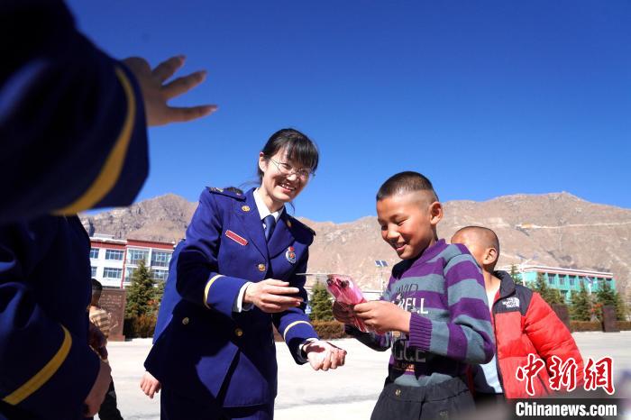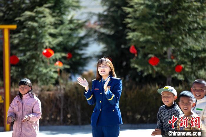 在活動中,志愿者們首先與孩子們進行了自我介紹,詳細了解孩子們的生活、學(xué)習(xí)情況。同時,帶著孩子們開展跳繩、丟沙包、短跑等互動活動。隨后,藏族歌手、總隊教育宣傳處助理員索朗德吉為孩子們演唱歌曲,在動聽的旋律中不時傳來孩子們的歡聲笑語,其樂融融的氛圍,更是感染著在場的每一個人。