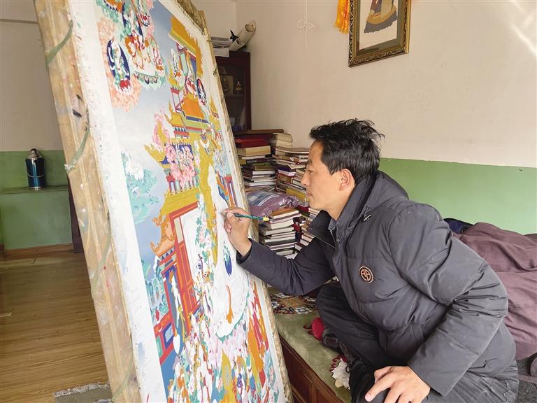 未來,貢覺杰將繼續(xù)創(chuàng)作新題材唐卡,比如說選擇畫一些西藏的自然風(fēng)光、高原獨有的保護動物以及西藏的一些歷史文物遺跡等?!斑@樣的創(chuàng)作,可以讓大家通過唐卡這種喜聞樂見的藝術(shù)形式,直觀感受西藏的歷史文化底蘊和自然風(fēng)光?!必曈X杰說。