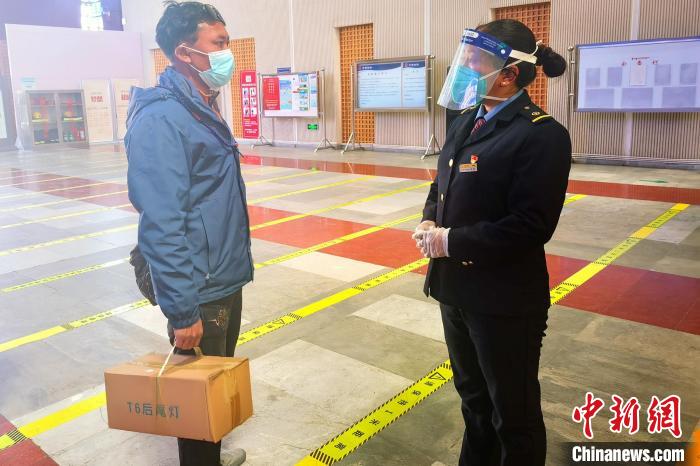 圖為羅布在林芝火車站引導(dǎo)乘客。 國(guó)鐵青藏集團(tuán)有限公司 供圖