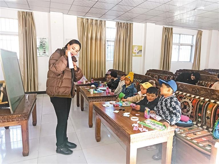 圖為駐村工作隊(duì)隊(duì)員在給村里的孩子們輔導(dǎo)功課。記者 張猛 攝