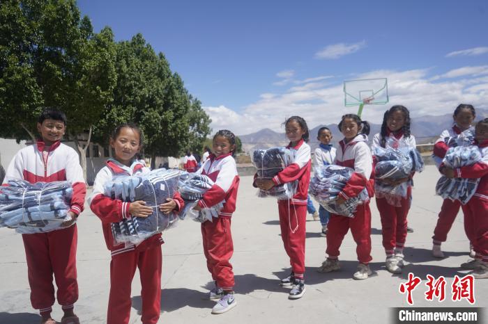 圖為拉薩出入境邊防檢查站的民警為學生發(fā)放校服?!∝暩聛硭?攝