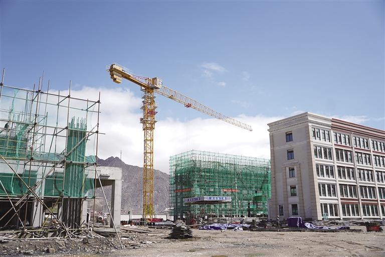 16日,記者在施工現(xiàn)場(chǎng)看到,拉薩市實(shí)驗(yàn)小學(xué)教育城分校北面,很大一塊空地被擋板圍了起來,大型起吊機(jī)正在擋板內(nèi)來回運(yùn)轉(zhuǎn)。其中,有三棟樓已拔地而起,從外面看主體已經(jīng)竣工。