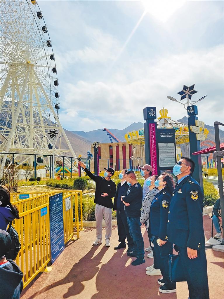 拉薩市市場監(jiān)督管理局執(zhí)法人員介紹,目前拉薩市有3家游樂園,共有大型游樂設(shè)施26臺,其中在用21臺,停用5臺。專項督導(dǎo)工作重點是檢查大型游樂設(shè)施使用單位疫情防控工作是否落實、安全管理制度是否完善、安全管理人員配備是否到位、作業(yè)人員是否持證、大型游樂設(shè)施是否定期檢驗、每日試運行和運行記錄是否齊全、應(yīng)急救援預(yù)案是否制定、安全保護裝置是否良好、警示標志是否完備等情況。