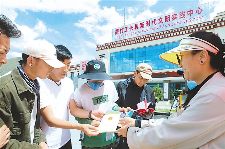 近日,墨竹工卡縣開展新時(shí)代文明實(shí)踐志愿服務(wù)活動(dòng)。在活動(dòng)現(xiàn)場(chǎng),各參與單位為群眾發(fā)放宣傳手冊(cè)、書籍和雨傘、水杯等物品,向群眾宣傳講解相關(guān)知識(shí),還以免費(fèi)理發(fā)、免費(fèi)修電腦等方式為現(xiàn)場(chǎng)群眾開展了送溫暖、送科技、送法律活動(dòng),進(jìn)一步提高了群眾對(duì)各項(xiàng)政策的知曉度,豐富了群眾的文化生活。