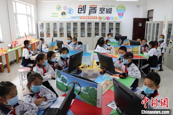 在天祝縣天師附小智慧教室內(nèi),農(nóng)牧區(qū)的孩童“觸網(wǎng)”感知外面的世界。 天??h委宣傳部供圖