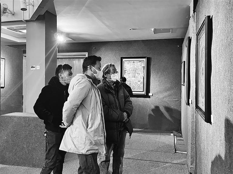 參展人員欣賞唐卡作品。文/圖 記者 張琳
