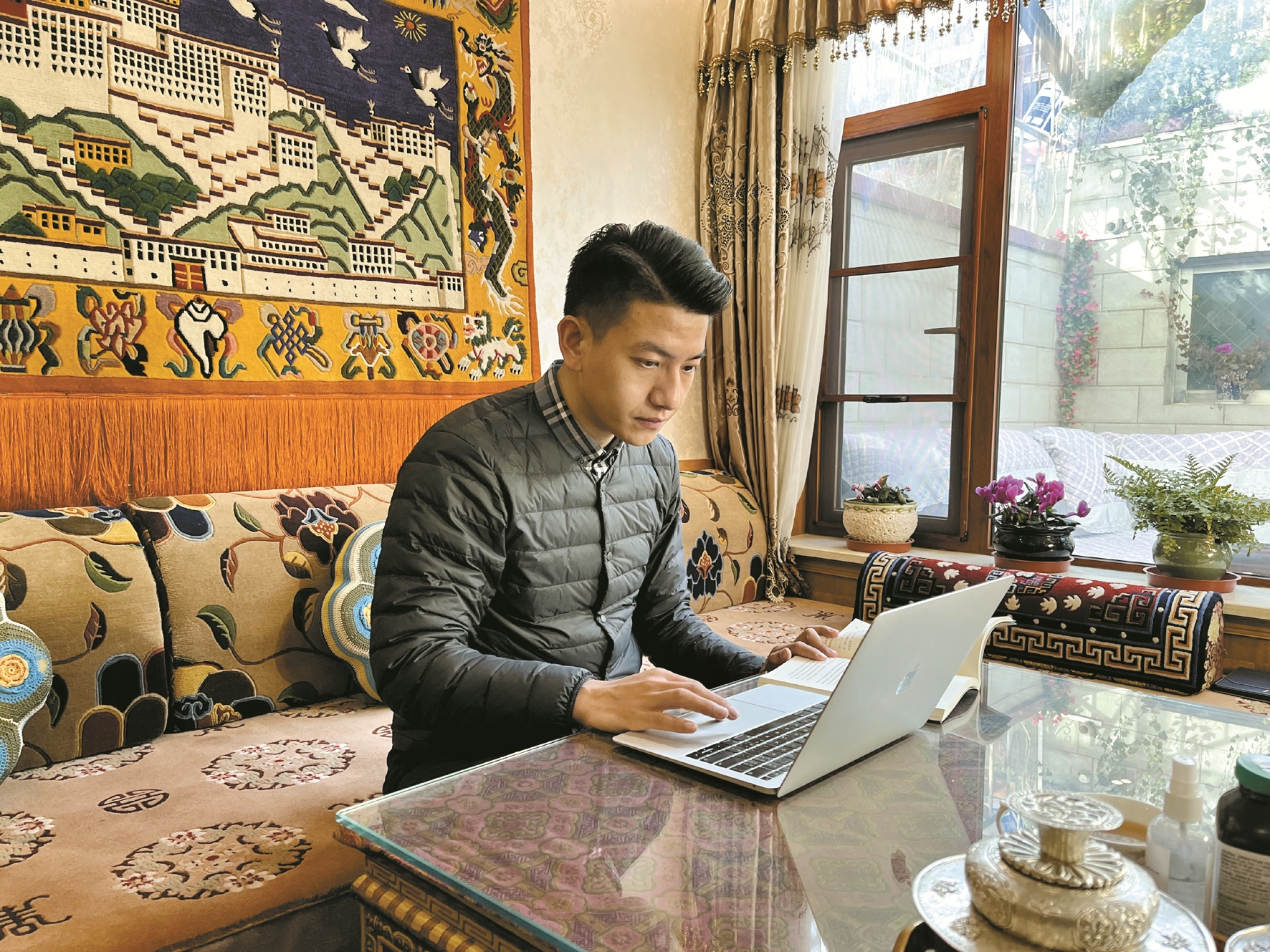 冬日午后,記者在家中見到丹臻群佩時(shí),他正在認(rèn)真品讀《如何講好中國故事》一書。作為清華大學(xué)新聞與傳播學(xué)院的一名博士生,他正在思考如何用中國的話語、中國的智慧、中國的方案,結(jié)合西藏特色、拉薩特點(diǎn),把民族團(tuán)結(jié)故事講好,并且講出去。