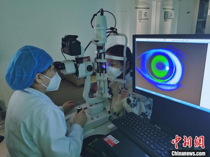 圖為青海省一醫(yī)療機(jī)構(gòu)眼科專家開(kāi)展眼科檢查?!?zhí)砀?攝