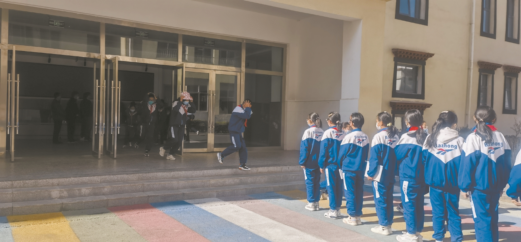 圖為在“地震科普、攜手同行”主題活動中,拉薩市第八中學師生進行地震應急疏散演練。 拉薩融媒記者 楊 璐攝