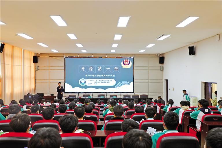 一堂“交通安全”課、一堂“禁毒知識(shí)”課、一堂“法治教育”課……活動(dòng)中,民警們通過播放視頻、以案說法、現(xiàn)場(chǎng)演示等多種教學(xué)形式,用通俗易懂的語(yǔ)言,直觀生動(dòng)的講解,熱烈輕松的互動(dòng),為同學(xué)們送上法律知識(shí)、交通安全、禁毒、反詐等“知識(shí)大禮包”。