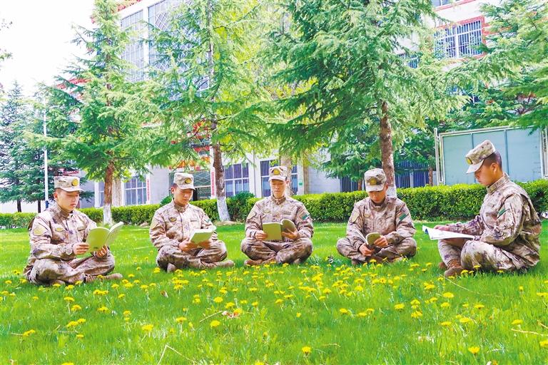 圖為西藏拉薩警備區(qū)某團官兵利用休息之余在營區(qū)內看書。付枰凱 記者 趙文慧 攝