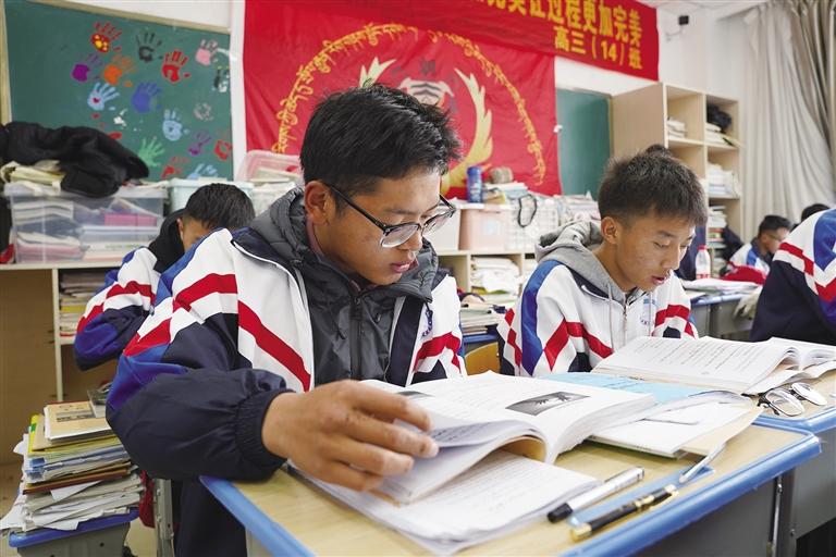 “叮鈴鈴”……隨著下課鈴聲響起,教室瞬間“熱鬧”了起來。有的同學走出教室活動久坐的身體、有的同學拿出習題冊和同桌小聲地討論、有的同學向老師請教不明白的知識點……清風拂過,暖暖的陽光照在這些青春的身影上,演繹出一首屬于青春的奮斗頌歌?!艾F(xiàn)在是最緊要的關(guān)頭,必須把全部精力投入到學習中,爭取多掌握一些知識點?!备呷?2班學生索朗旦增說,“我的目標是西南政法大學,希望通過自己的努力能實現(xiàn)這個夢想。”