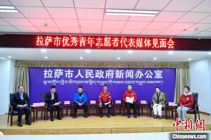 圖為拉薩優(yōu)秀青年志愿者代表媒體見面會現(xiàn)場。 貢嘎來松 攝