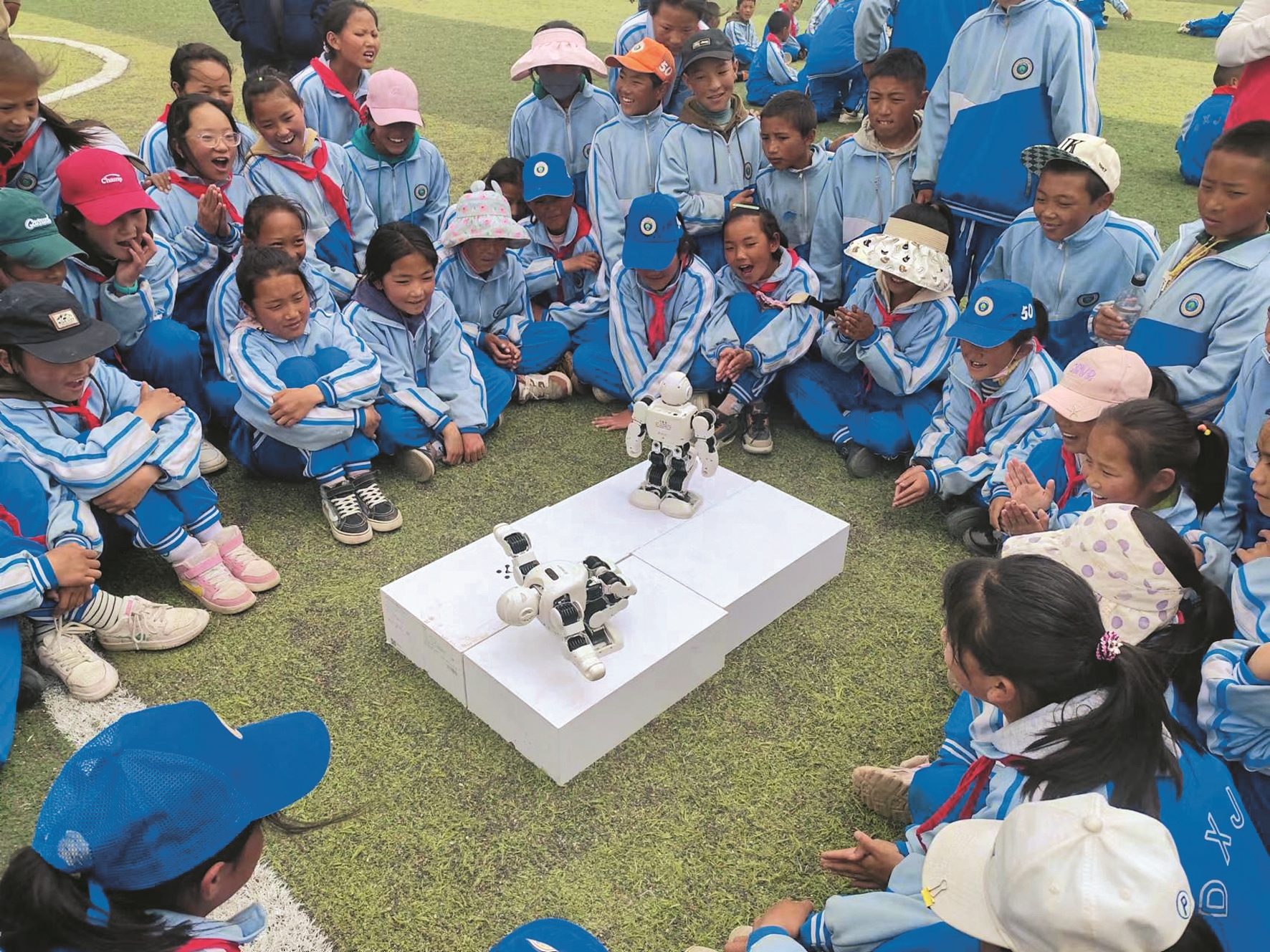 “你們有沒有上科學(xué)課?”“老師都講些什么內(nèi)容?”近日,在當(dāng)雄縣羊八井鎮(zhèn)中心小學(xué),市科協(xié)的工作人員正在給學(xué)生講解發(fā)展科學(xué)對生活的重要性,隨后工作人員將學(xué)生分為兩組,有序體驗機器人和VR眼鏡。在工作人員的操作下,機器人做出唱歌、跳舞、講故事、做操等動作。旁邊體驗VR眼鏡的學(xué)生不時伸伸手、踢踢腳,想去觸摸通過眼鏡看到的物體。