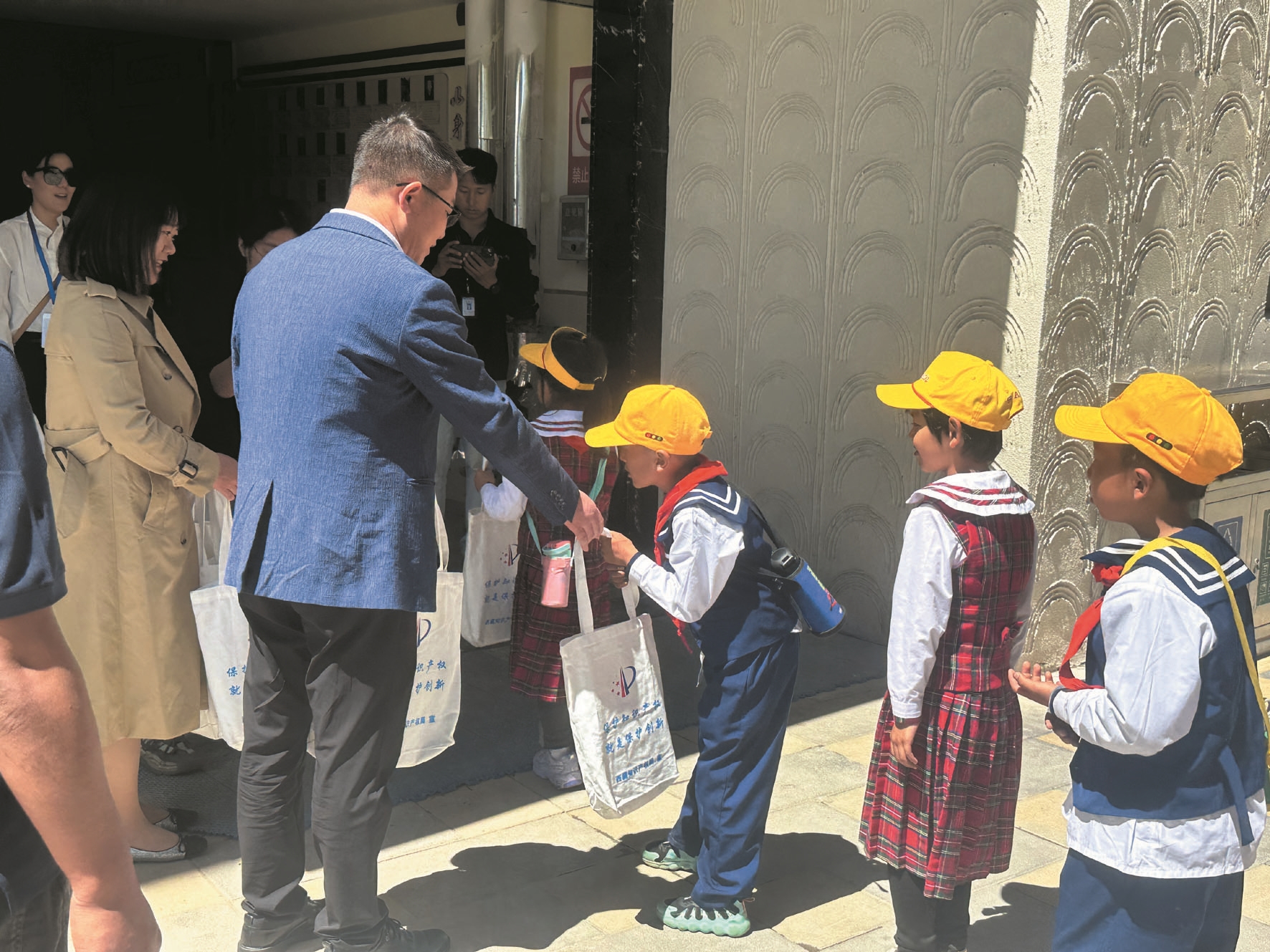 圖為自治區(qū)市場監(jiān)督管理局相關(guān)負(fù)責(zé)人給學(xué)生發(fā)放學(xué)習(xí)宣傳資料及物品。拉薩融媒記者 次仁卓嘎攝