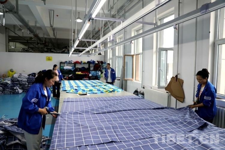 中國西藏網(wǎng)訊 6月28日,位于青海省海東市民和回族土族自治縣的青海洺欽和服飾制作車間內(nèi),電動縫紉機的噠噠聲不絕于耳,穿著藍色制服的工人正專注地趕制一批中學校服。