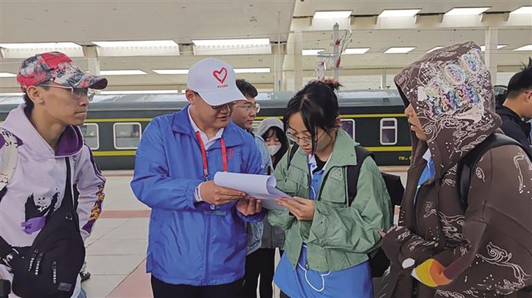 “到西部去、到基層去、到祖國和人民最需要的地方去。”7月24日,2023屆大學(xué)生西部計劃西藏專項(xiàng)志愿者陸續(xù)抵藏報到?,F(xiàn)場,共青團(tuán)西藏自治區(qū)委員會組織了前幾屆志愿者在火車站接站?!拔沂菑暮幽线^來做志愿者的,在西藏已經(jīng)2年了,一直在自治區(qū)經(jīng)信廳上班。今天是過來接學(xué)弟學(xué)妹們的,幫助他們登記報到?!表n義凡說。中午11點(diǎn)左右,火車進(jìn)站,志愿者們陸續(xù)前來報到。“這是我第一次來西藏,還是以志愿者的身份,我會好好工作,為西藏的發(fā)展作出自己的貢獻(xiàn)?!眮碜蕴旖虻奶锟苏f。