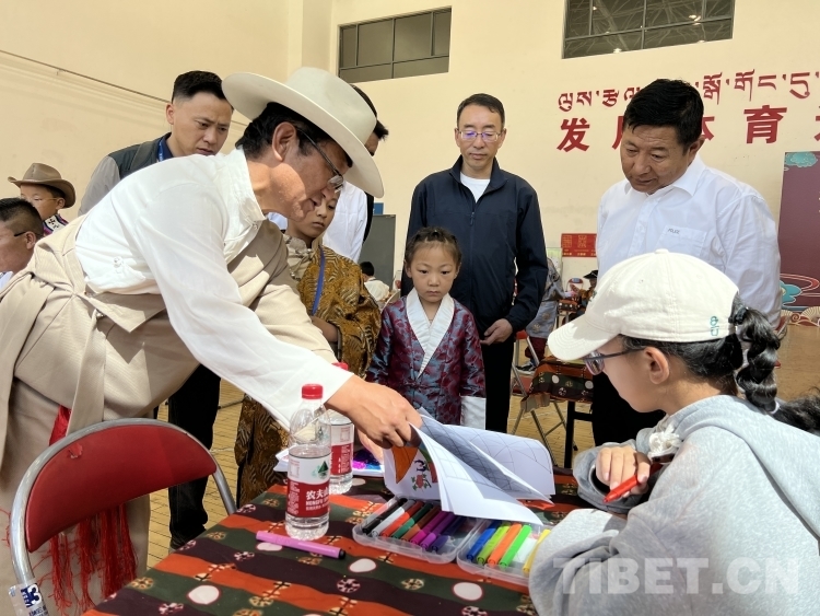 圖為小小藏棋老師給家長傳授藏棋玩法和畫棋盤現(xiàn)場 攝影:德吉卓瑪