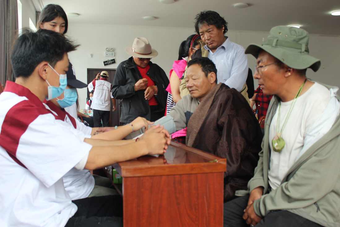 活動(dòng)期間,“民族團(tuán)結(jié)返鄉(xiāng)實(shí)踐團(tuán)”師生先后到森布日高海拔生態(tài)搬遷安置點(diǎn)和那曲駐拉薩辦事處等,與西藏防治艾滋病協(xié)會(huì)工作人員共同開展“中醫(yī)藥健康進(jìn)西藏 民族團(tuán)結(jié)我先行”的愛心醫(yī)療志愿服務(wù),為當(dāng)?shù)乩习傩蘸屠细刹块_展針對(duì)性的中醫(yī)藥知識(shí)宣講,還為大家測(cè)血壓、血糖,共同體驗(yàn)中醫(yī)藥花茶及香囊的制作過(guò)程,免費(fèi)發(fā)放藥物等。