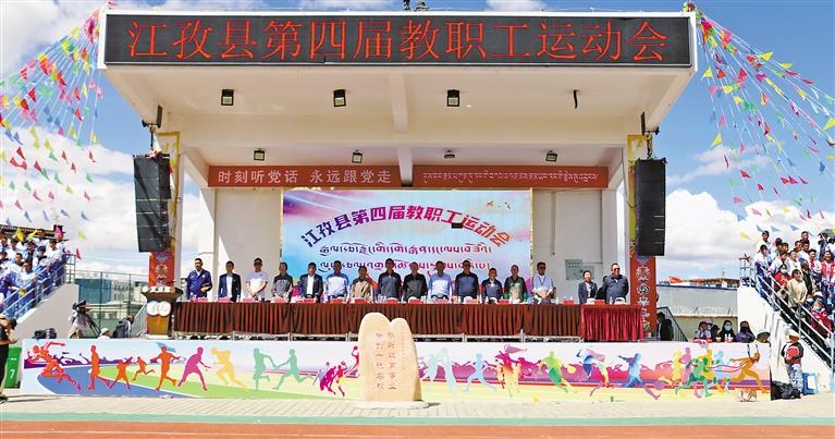 近日,日喀則市江孜縣教育系統(tǒng)舉辦以“奮斗教育路 建功英雄城”為主題的第四屆教職工運動會。本屆教職工運動會比賽項目眾多,競賽類項目有男女100米跑步賽、男女4×100米接力賽;田賽類項目有男女鉛球、男女跳遠、男女一分鐘跳繩和女子一分鐘踢毽子比賽;傳統(tǒng)賽類項目有吉韌(藏式克郎球)、藏棋(國王與大臣)、男女拔河比賽、秀茲(藏骰一男一女混合);趣味賽類項目有陸地龍舟(男女混合)、旋風跑(男女混合)、隔空取物(男女混合)、“乒”盡全力(男女混合);球賽類項目有男子足球和籃球、女子籃球比賽等項目。