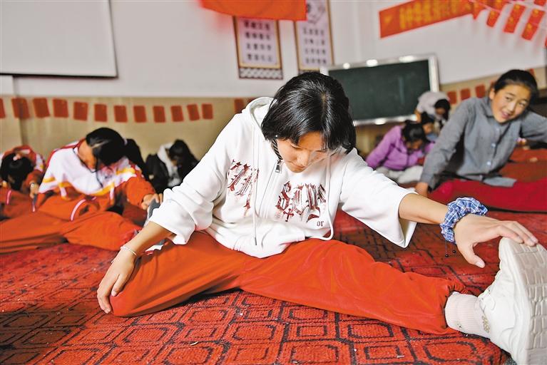拉薩市第四中學(xué)學(xué)生在舞蹈社團(tuán)課上練習(xí)舞蹈基本動作。記者 王敏 攝