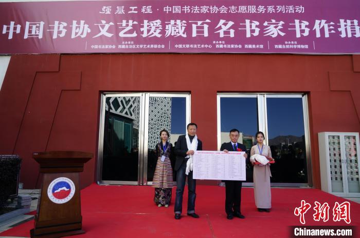 圖為捐贈書法作品交接儀式。普布次仁 攝