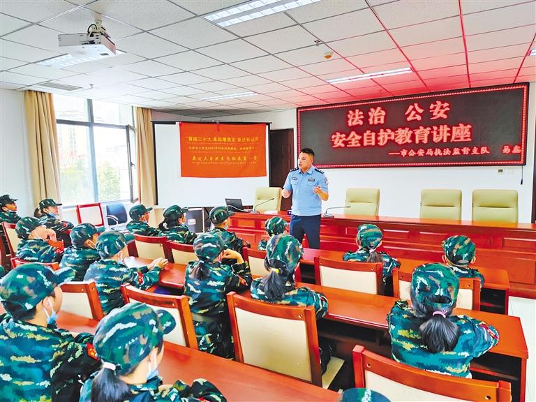 圖為拉薩市公安局執(zhí)法監(jiān)督支隊(duì)民警為少年宮學(xué)員開(kāi)展安全自護(hù)教育講座。