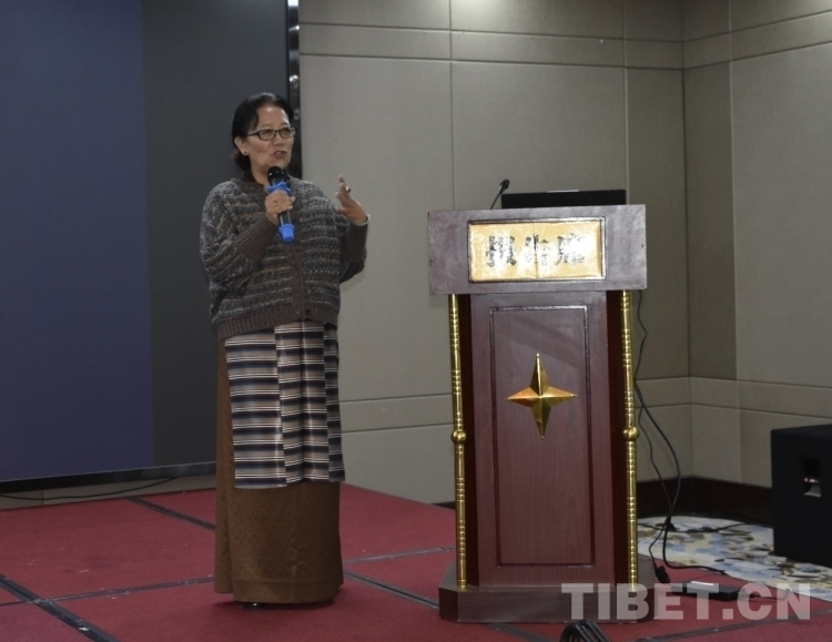 圖為11月13日,中國藏學研究中心研究員次仁央宗作關(guān)于拉薩文化的演講