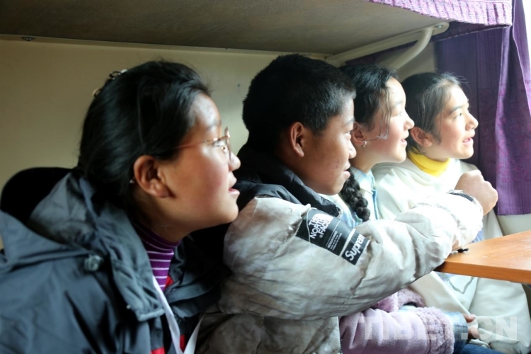 還有一到飯點(diǎn)就來詢問孩子們怎么吃飯的列車員、和孩子們一起跳鍋莊的游客、主動分享零食的小妹妹……同學(xué)們在火車上的經(jīng)歷,讓帶隊老師次仁羅布不禁感嘆,孩子們第一次出遠(yuǎn)門,還沒到目的地就已經(jīng)深切地感受到中華民族一家親的濃厚氛圍,真是非常幸運(yùn)。