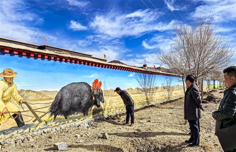 “我們將高原農(nóng)耕文化、民族團結(jié)故事、道路安全常識等內(nèi)容繪制在墻上,村民進出都可以看到,潛移默化中會起到宣傳作用。在墻上繪制的精美風景畫,也給鄉(xiāng)村增添了一道美景,弘揚了文明健康、積極向上的風氣。”桑珠孜區(qū)委宣傳部相關(guān)負責人說。