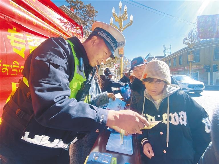 圖為工作人員向過往群眾發(fā)放宣傳手冊(cè)并講解網(wǎng)絡(luò)安全知識(shí)。記者 丹增平措 攝
