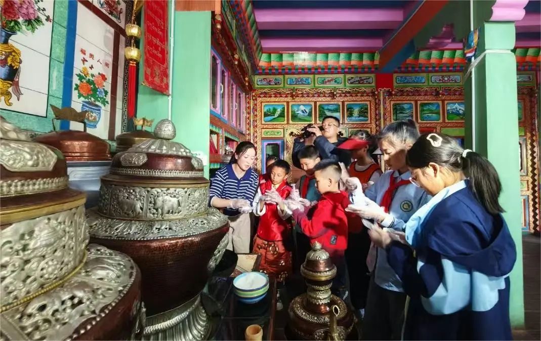 活動(dòng)中,各地少先隊(duì)員代表一同走進(jìn)青稞田地、古鹽田、鹽井宗解放委員會(huì)舊址等地,參加了“認(rèn)識(shí)青稞”種植文化交流、“感知井鹽”制作技藝體驗(yàn)、“紅色鹽井”尋訪鄉(xiāng)村發(fā)展變化等豐富多彩的項(xiàng)目,沉浸式、體驗(yàn)式感受西藏新農(nóng)村建設(shè)和民風(fēng)民俗,在互學(xué)互鑒中增進(jìn)理解、收獲友誼、共同成長(zhǎng)。