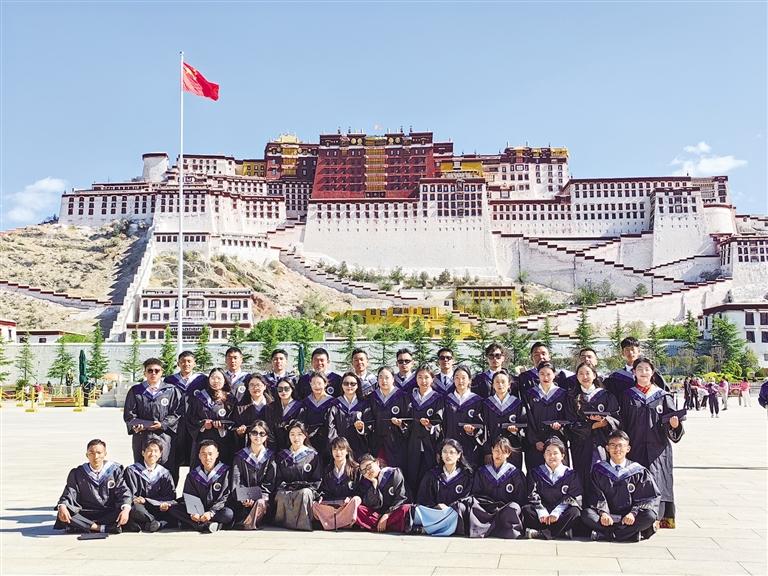 拍攝畢業(yè)照則是高校每一屆畢業(yè)生的“狂歡”。盛夏里,高校畢業(yè)生們身穿學(xué)士服或獨具特色的藏裝,相互獻哈達,在布達拉宮廣場、在校園、在羅布林卡、在拉薩河邊留下青春最美的樣子,定格炙熱的青春歲月。