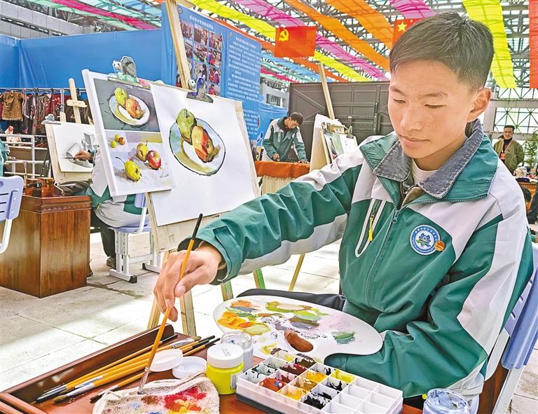 圖為那曲市職業(yè)技術(shù)學(xué)校的學(xué)生在進(jìn)行繪畫創(chuàng)作。記者 萬(wàn)靖 攝