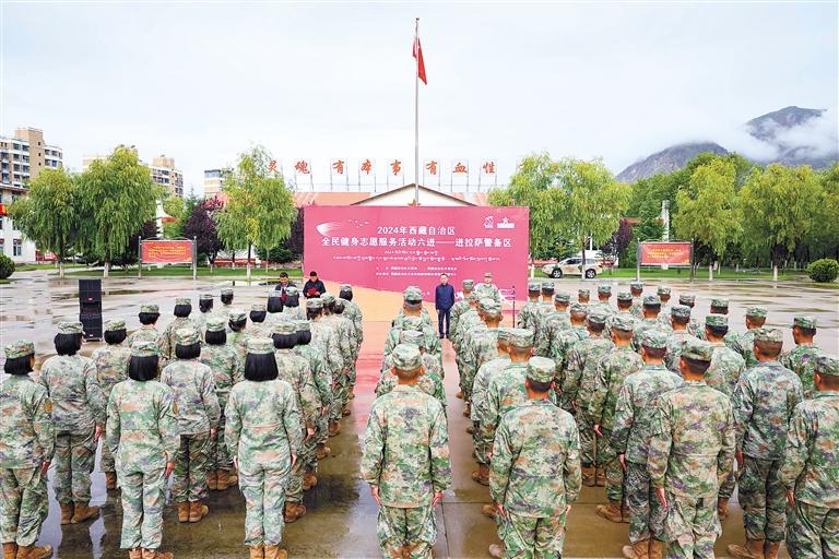 圖為近日,西藏自治區(qū)體育局及體育總會干部職工走進駐藏某部,開展全民健身志愿服務(wù)“六進”暨送體育進部隊活動。這是活動現(xiàn)場。通訊員 梁康 記者 唐斌 攝
