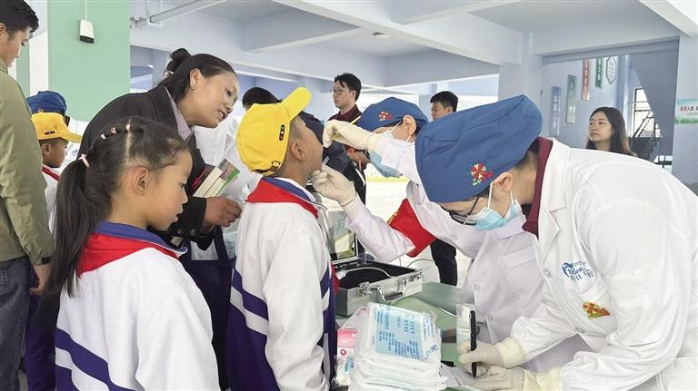 醫(yī)生為孩子們檢查牙齒。文/圖 記者 婁夢琳