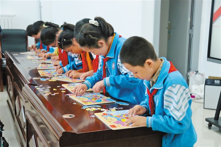 圖為學(xué)生參加“小小少年識(shí)地圖”拼圖比賽。記者 潘璐 攝