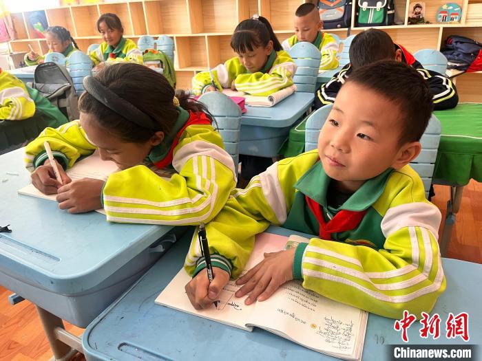 與此同時,四年級2班的漢族學生劉念恩正在上藏語文課,他抄寫有些慢,同桌的女生立刻用筆幫他找到對照位置?!拔覀儼嘀挥形乙粋€漢族,我也要上藏語文課,同學們和我關系非常好,我們經(jīng)常一起踢足球。”劉念恩說。