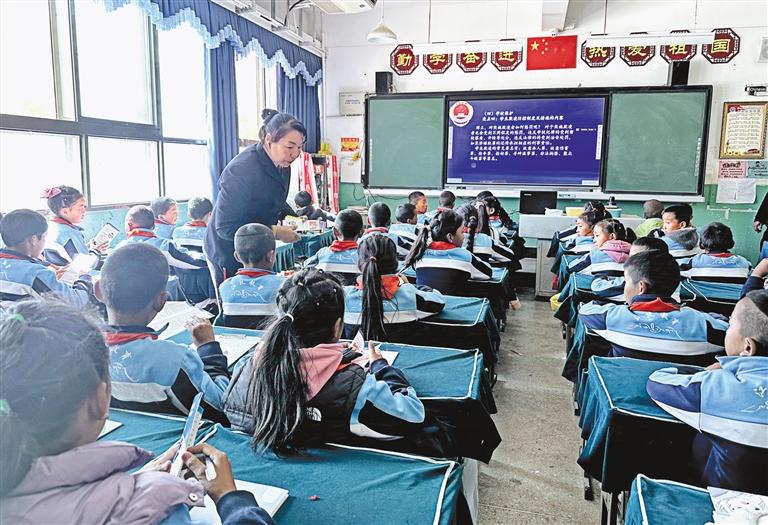 圖為檢察官在教室內(nèi)為學(xué)生講解法律知識。記者 旦增嘎瓦 攝