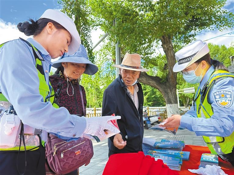 為增強市民群眾的道路交通安全意識,預防和減少道路交通事故發(fā)生,日前,拉薩市公安局交警支隊城西大隊在宗角祿康公園開展道路交通安全宣傳活動,將交通安全知識帶到群眾身邊。